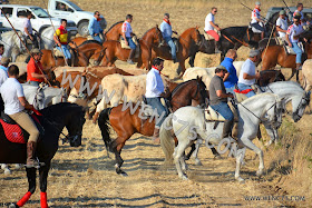 Enhorabuena al pueblo de Lominchar (Toledo) por ser el primero de diferentes municipios toledanos (CASARRUBIOS DEL MONTE,BOROX, CEDILLO) en poder llevar a cabo un encierro campero. En esta ocasión con la dirección de Diego Valladar y con dos novillos de la ganadería de ALCURRUCEN, la entrada transcurrió sin peligro alguno conducidos magistralmente por la manada de mansos hasta la entrada a la plaza. Estos encierros camperos reactivan la maltrecha economía local de los municipios atrayendo a miles de personas, para contemplar cual estampa campera.